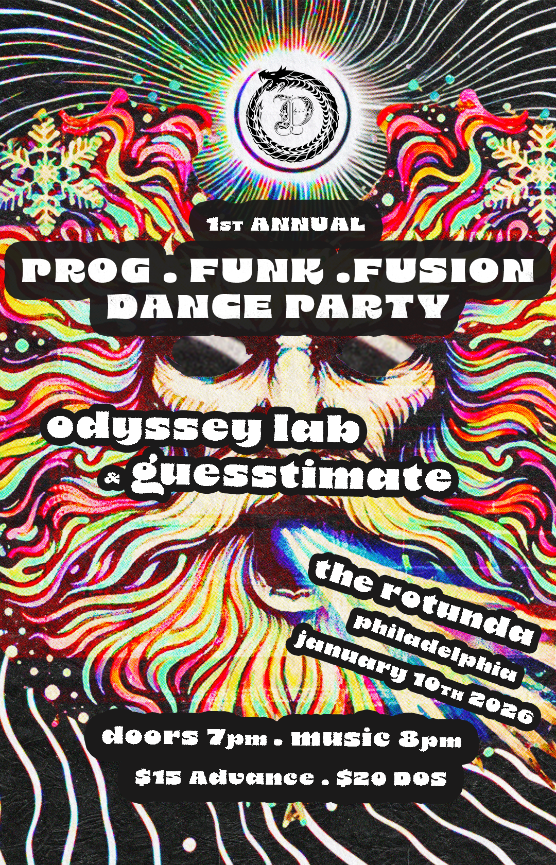 Circle D Productions is excited to present the first annual Prog / Funk & Fusion Dance Party — a special evening of instrumental funk, jazz/rock blend, art rock, and experimental music at The Rotunda on the UPenn Campus. Headlining the night, Odyssey Lab brings their Philly-based instrumental funk and fusion dance party energy, while Guesstimate delivers experimental progressive rock drawing from the legends of 70s and 80s prog.