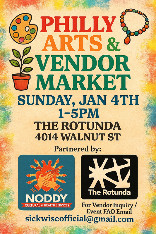 Kicking off the new year with our “Philly Arts & Vendor Market” — Jan 4th - 1-5pm with our partners @the_rotunda_philly & @noddyculturalhealthservices