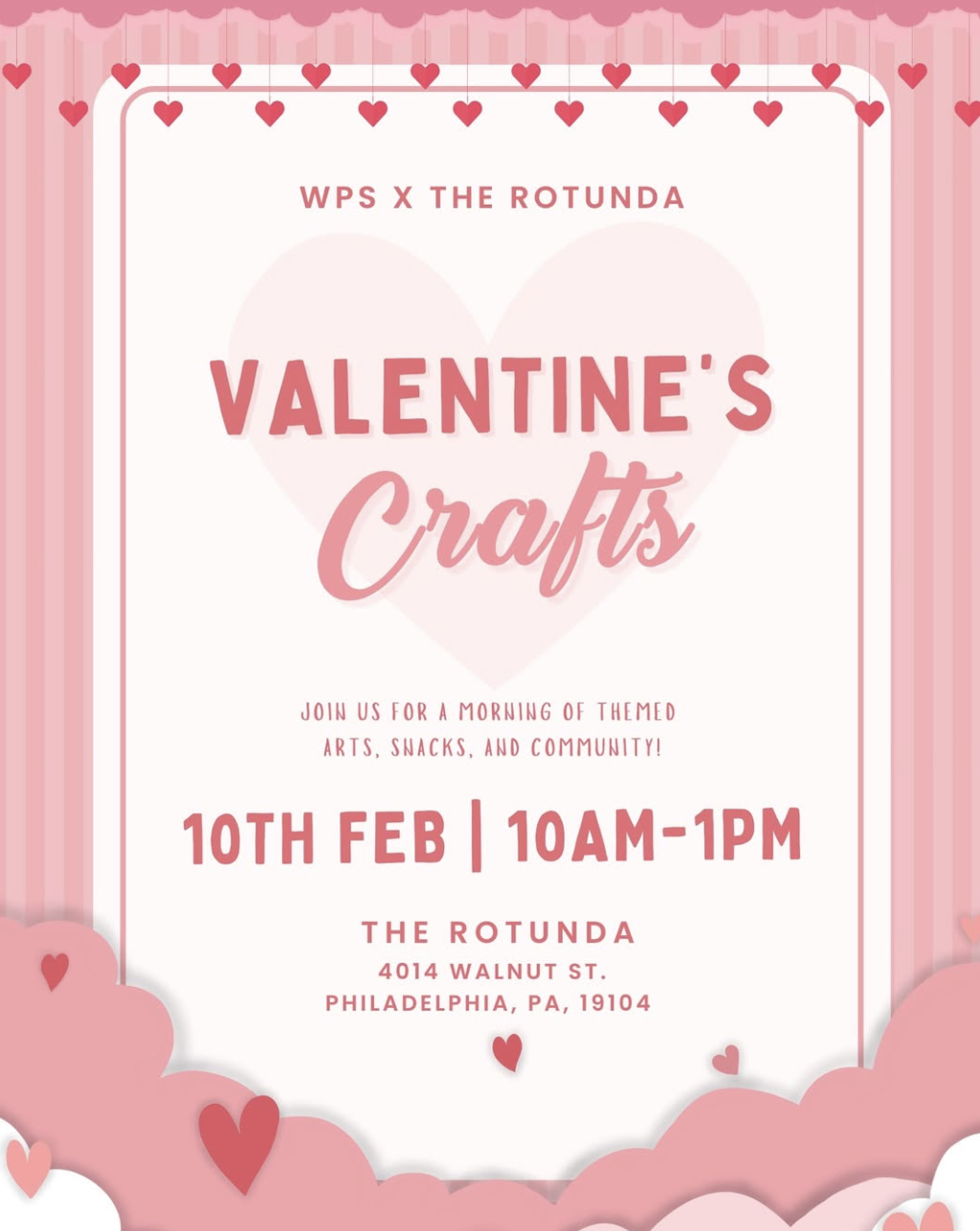 The West Philadelphia Sanctuary invites you to our Valentine's Crafts event Tuesday, 2/10, from 10am-1pm!