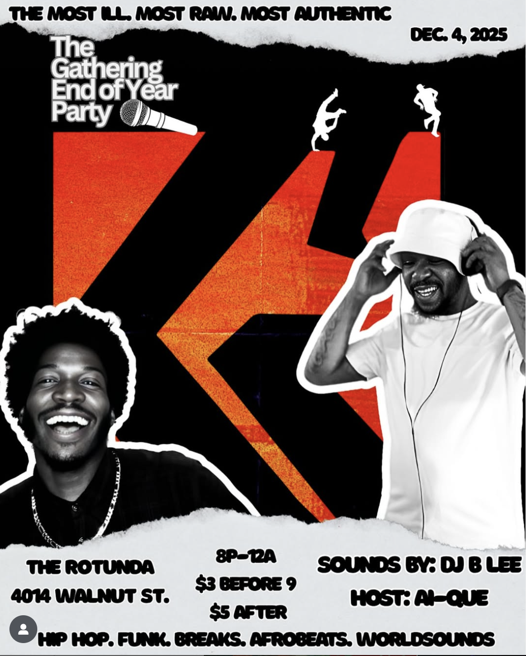 We gotta do things a little different this year with the holidays! No Gathering in November because of Thanksgiving, no Gathering at the end of December because of Christmas…so we’re doing the first Thursday Dec 4th. Come celebrate the end of the year early with us! @2manymoves on the 1s & 2s… @ai_que on the mic to keep it hype. It’s an end of the year party…emphasis on PARTY!