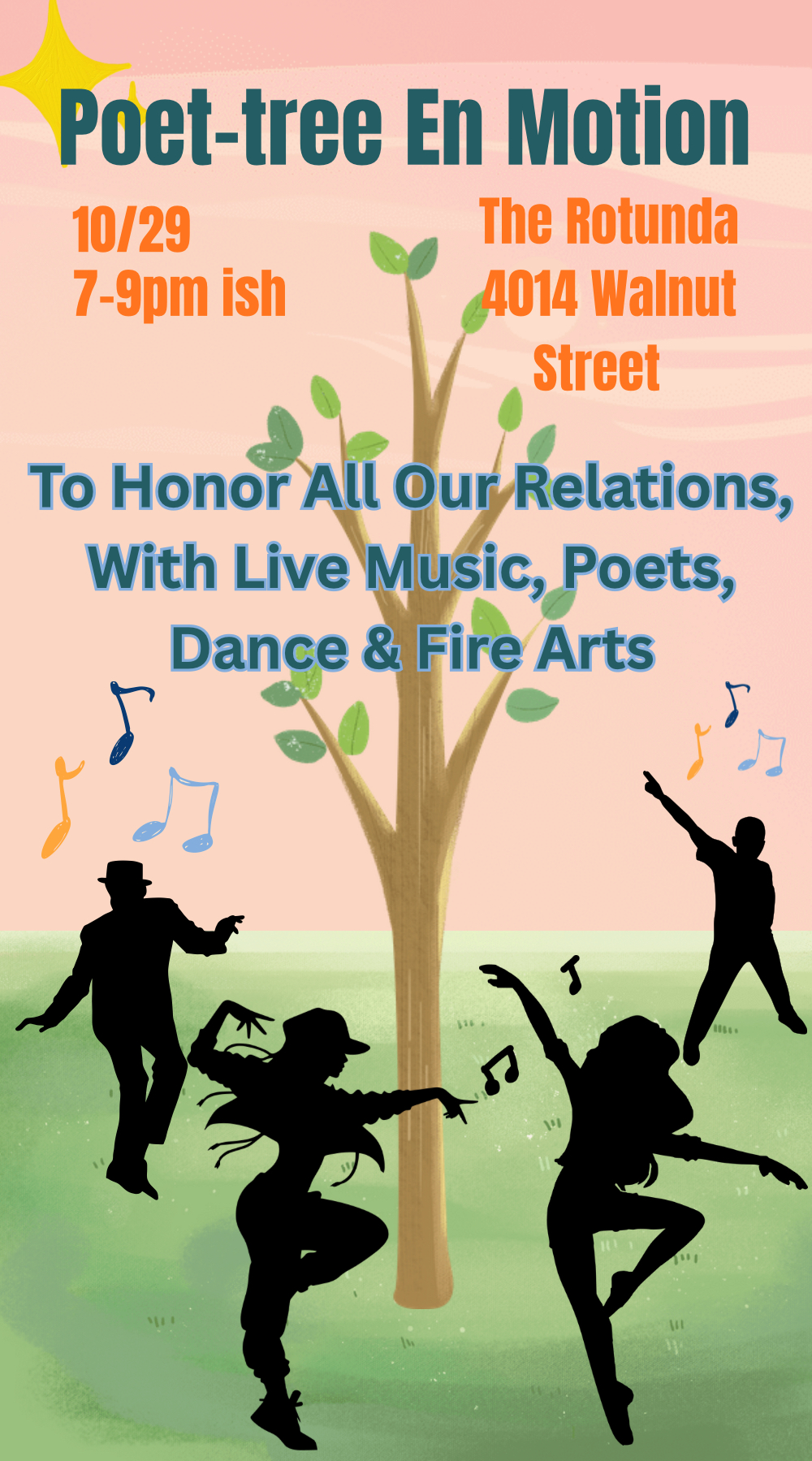 The Poet-tree En Motion is supported by grants from the University of Pennsylvania. Donations will be collected at the door for the International Rescue Committee (IRC) to support emergency famine relief and aid to war-torn regions around the world. Tips are also welcome and encouraged for the artists.