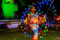 Fern McMillian is a radiant force of movement and self-expression. She brings playfulness and strength to every spin of her hula hoop. A mother, fitness inspiration, and well-known fire dancer, she’s been featured in the Burning Man Conclave and at Rhythm and Ritual with Departed and Minimal Chaos. Pure joy in motion, set aflame. She wields a fire staff, palm torches, and an iso hoop.